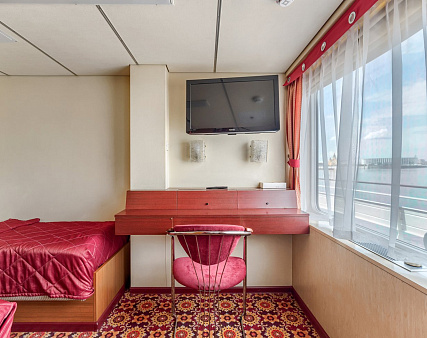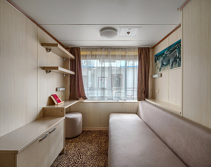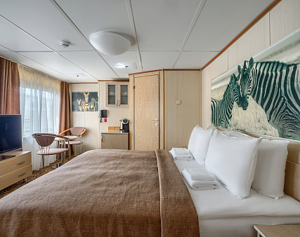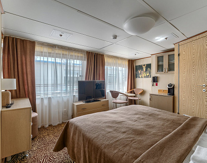 • Премиальный комфорт в каждой каюте: телевизор, холодильник и сейф, бутилированная вода с ежедневным пополнением, гигиенический набор, а также капсульные кофемашины и халаты в каютах категории Люкс;