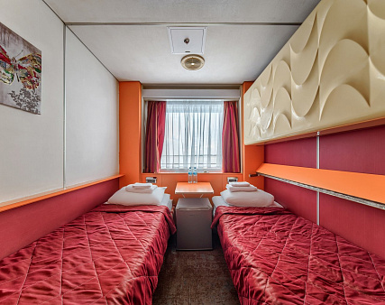 • Бутилированная вода в каюте (ежедневное пополнение) — 1 бутылка (0,5л) на человека; на экскурсию (основную и дополнительную) 1 бутылка (0,5 л) на человека во всех каютах.