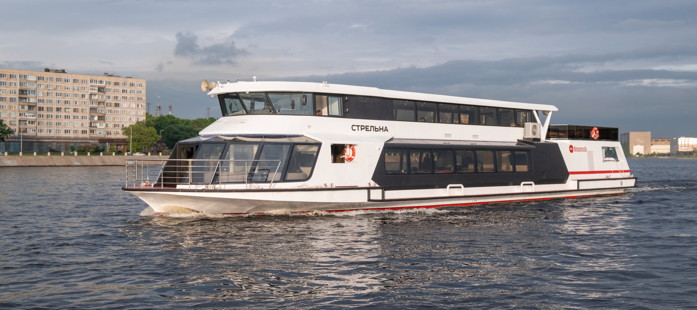 Электросудно «Стрельна» имеет ледовый класс с возможностью круглогодичной эксплуатации, включая зимние условия. В отличие от дизельных предшественников, судно на электродвижении «Стрельна» при движении практически не создает шума и вибраций, на борту отсутствует запах переработанного топлива, что обеспечивает пассажирам новый уровень комфорта и современный способ увидеть город с нового ракурса.