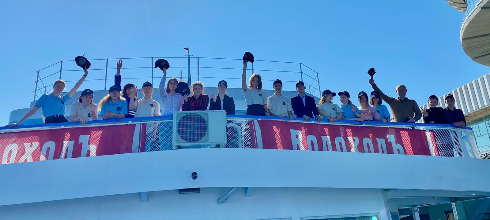 На борту теплохода для школьников была подготовлена разнообразная развлекательная и просветительская программа. Ребята играли в настольные игры, приняли участие в мастер-классах по прикладному творчеству, танцевальных и спортивных мероприятиях. В образовательных целях на теплоходе была организована Школа речника: ребятам рассказали о работе теплоходов в период навигации и различных речных и морских маршрутах. Для более детального погружения в ознакомительный курс школьникам провели экскурсию в капитанской рубке и машинном отделении.