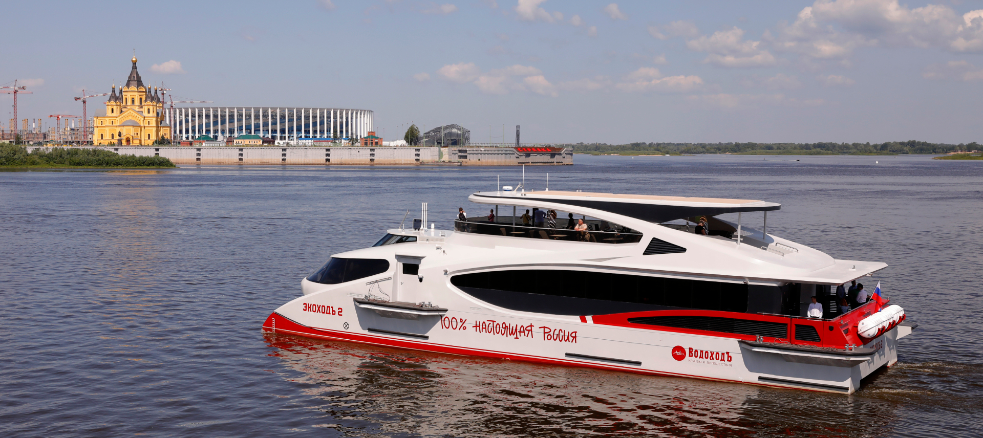 Новый пассажирский катамаран на электродвижении «ЭкоходЪ 2» 16 июня 2023 г. совершил первый прогулочный рейс в акватории Нижнего Новгорода. Теперь жители и гости города смогут ежедневно совершать речные прогулки на экологичном судне нового поколения. Построенный по заказу компании АО «ВодоходЪ. Пассажирский Порт» (дочерняя компания ООО «ВодоходЪ»), электрокатамаран будет осуществлять до 6 рейсов в день.