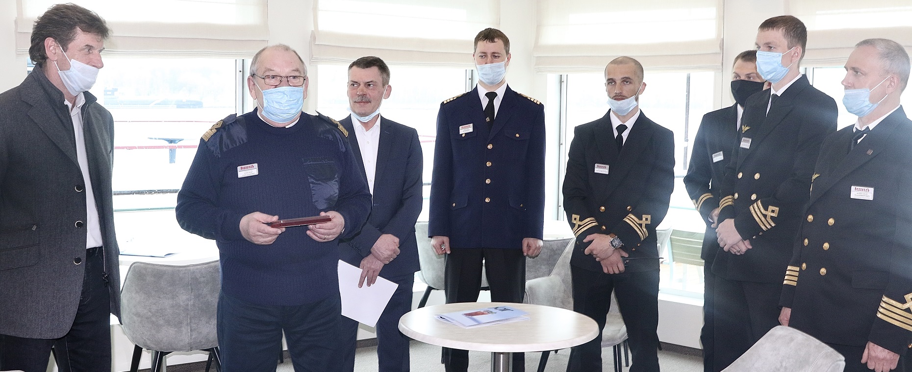 Первые награды были вручены капитанам Казакову Александру и Акишеву Максиму. Всего девять капитанов компании «ВодоходЪ» получили нагрудные знаки отличия «За безаварийную работу на речном транспорте» речных судов и судов «река-море». Нагрудным знаком отличия I степени были награждены капитаны речных судов и судов «река-море», не допустившие аварийных случаев на внутренних водных путях на протяжении 15 навигаций, II степени - не допустившие аварийных случаев на внутренних водных путях на протяжении 10 навигаций, III степени - не допустившие аварийных случаев на внутренних водных путях на протяжении 5 навигаций.