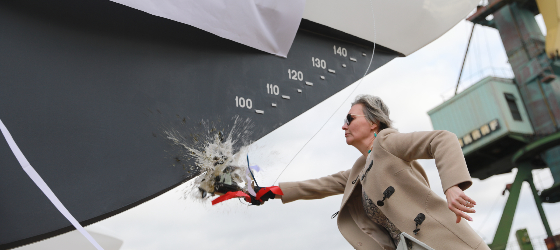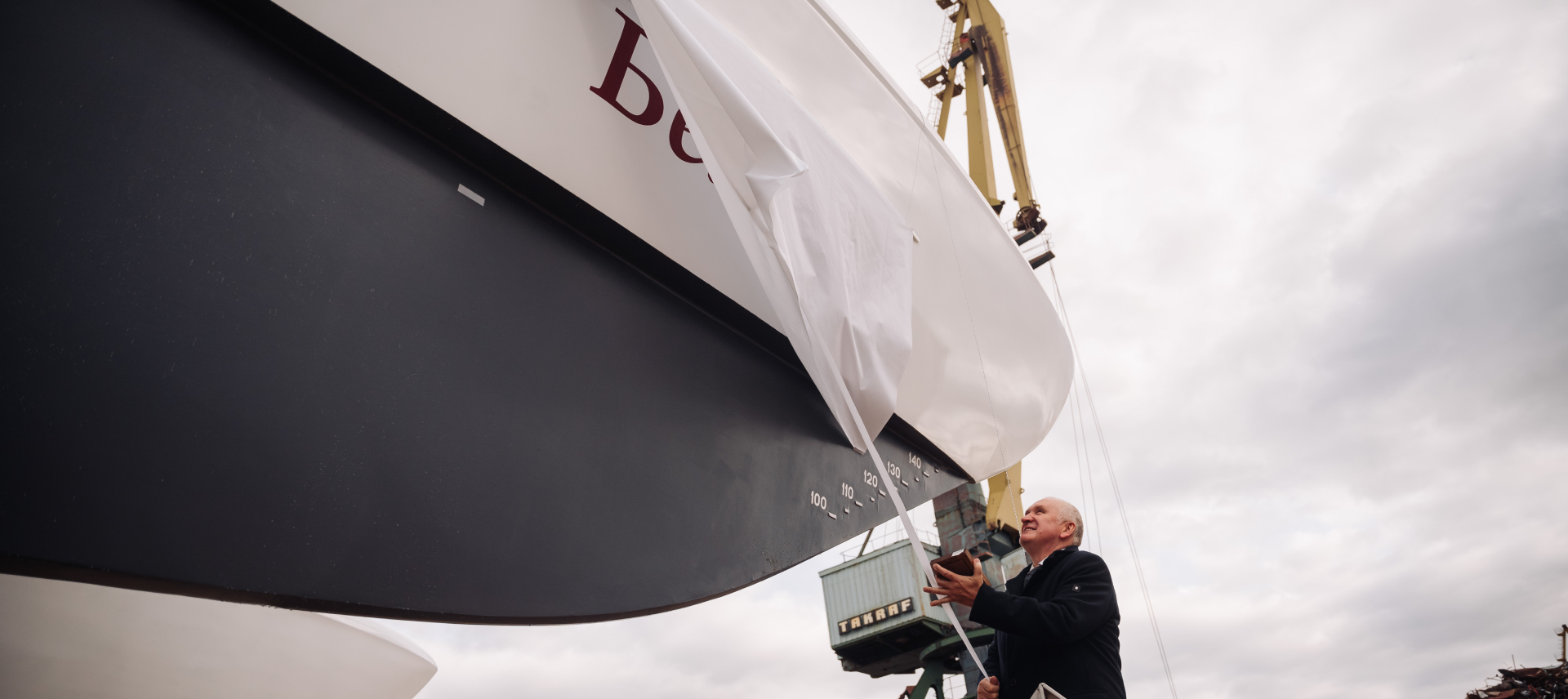 Почетная миссия стать крестной матерью нового электросудна была предоставлена Дарье Лукьяновой – супруге идейного вдохновителя и разработчика проекта Looker 1100H Александра Борисовича Лукьянова.