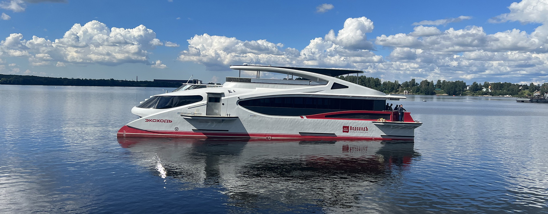 Двухпалубный катамаран «ЭкоходЪ», береговая зарядная станция (БЗС) и станция медленной зарядки были построены для региона по заказу компании АО «ВодоходЪ. Пассажирский Порт» (дочерняя компания «ВодоходЪ») на верфи судостроительной компании «Emperium» (входит в Sitronics Group) в Ленинградской области, организовавшей первое серийное производство электросудов в России речного и озерного классов.