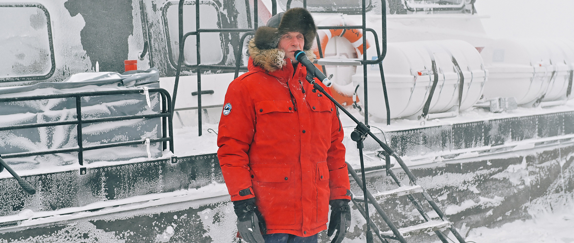 Погода в этот день тоже торжествовала — сильная метель, порывистый ветер и нулевая видимость создавали атмосферу настоящей Сибири. Байкал «окрестил» новое судно своим ледяным дыханием.