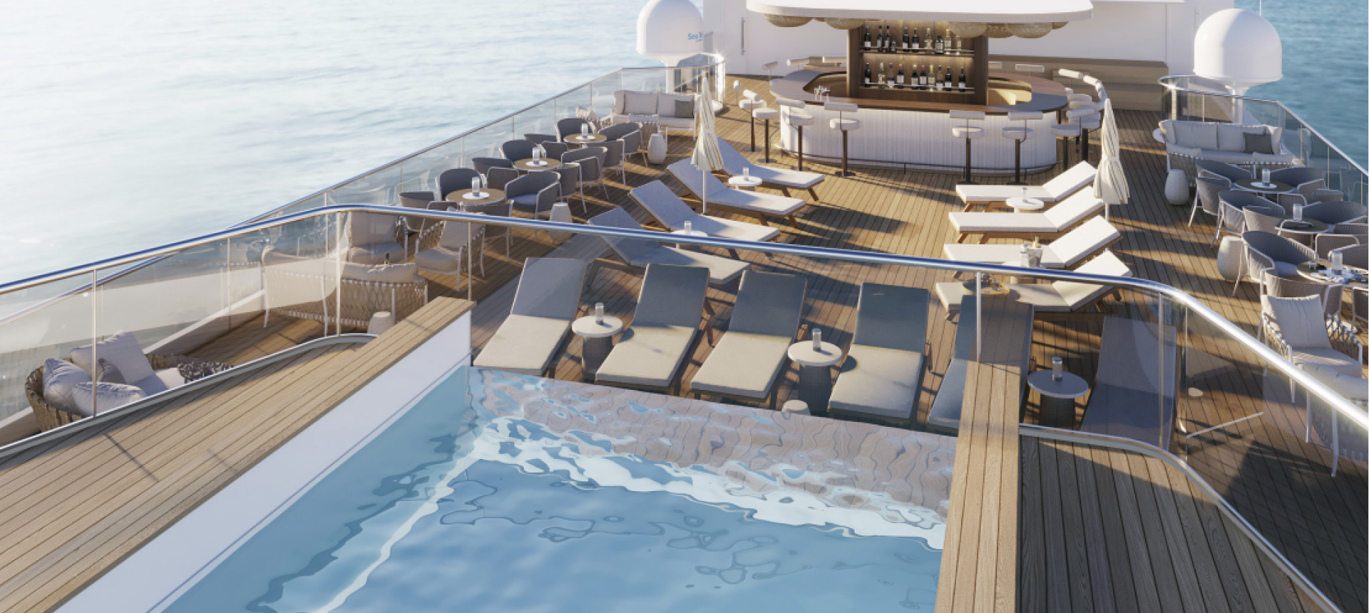 Эксклюзивной особенностью теплоходов проекта «Карелия» является открытый подогреваемый бассейн. На просторной прогулочной палубе можно удобно расположится в мягкой зоне у открытого бассейна, здесь же в баре заказать любимый напиток и наслаждаться РЕКАтерапией. Гости смогут с комфортом принимать солнечные ванны, слушать живую музыку в баре на свежем воздухе, любоваться речными пейзажами или участвовать в интерактивных мероприятиях.