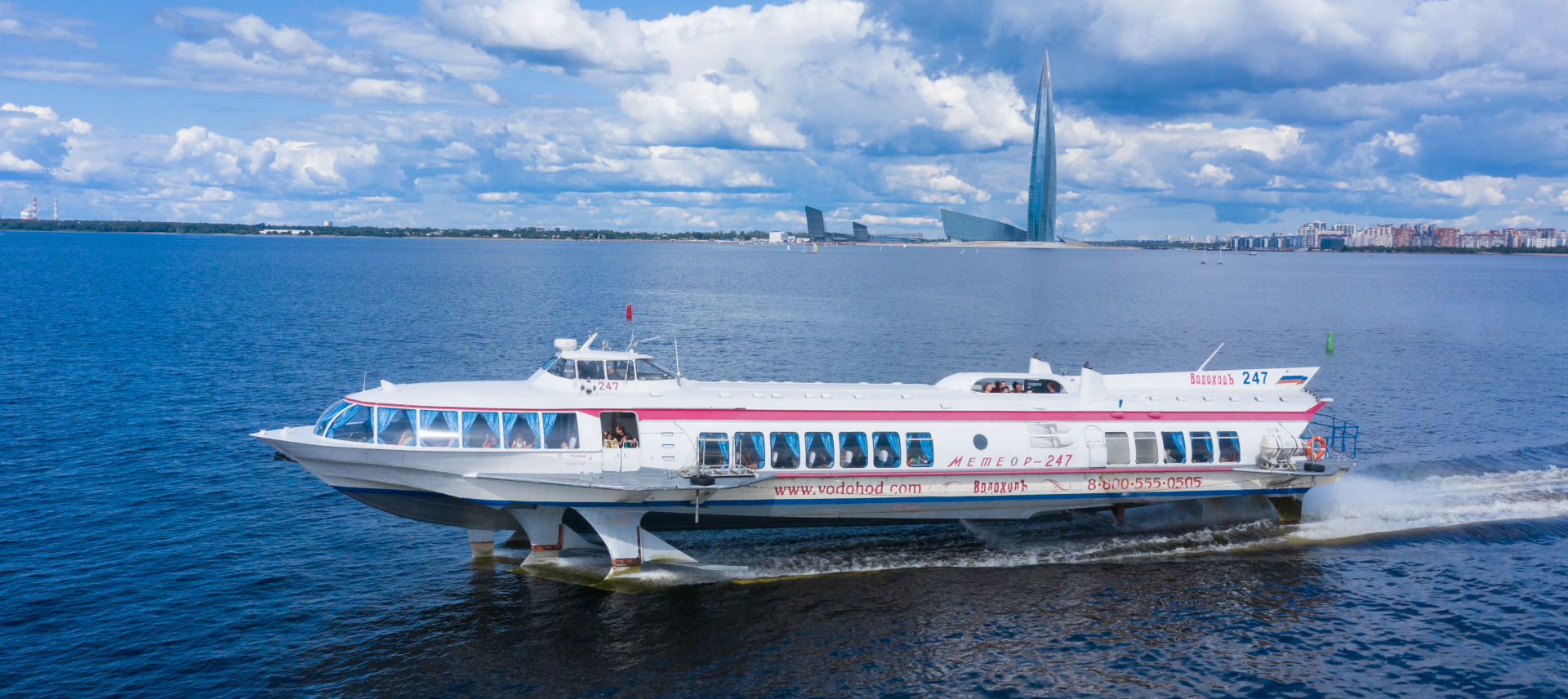В Санкт-Петербурге (оператор АО «ВодоходЪ.Пассажирский Порт») на маршруте от Эрмитажа до ГМЗ «Петергоф» работает 5 судов на подводных крыльях (СПК) «Метеор». За три месяца (с 28.04 по 31.07.2023 г.) «Метеоры» осуществили 2412 рейсов и перевезли 100 562 пассажиров, сохранив прошлогодние объемы — в 2022 году за тот же период скоростной линией воспользовалось 102 698 человека.