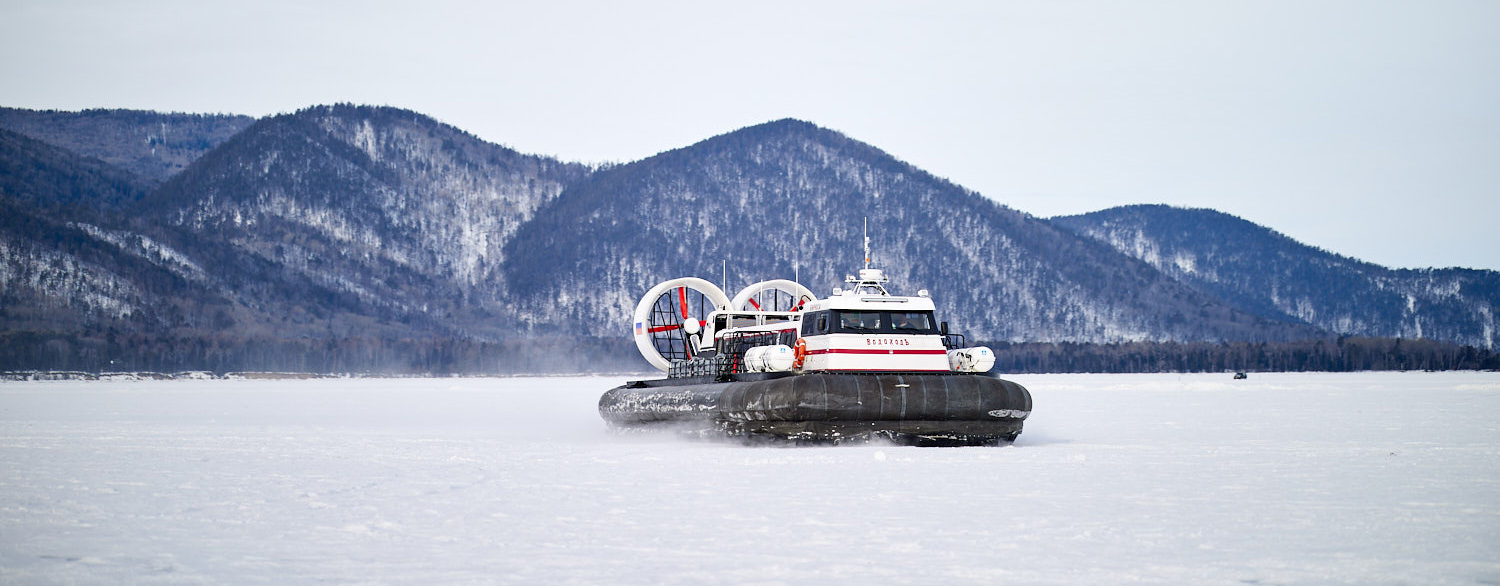 До этого, на испытаниях, СВП «Бирюса» развивала на льду максимальную скорость до 75 км/ч. Кстати, наша «резвая подушка» была самым крупным транспортным средством, принимавшим участие в скоростных заездах: ее габариты 18,5 Х 8 метров. Организаторы беспокоились, что обычная ширина трассы будет маловата для «Бирюсы», но наша «малышка» с 36-тью пассажирами на борту плавно и безопасно «парила» по льду самого глубокого озера мира.