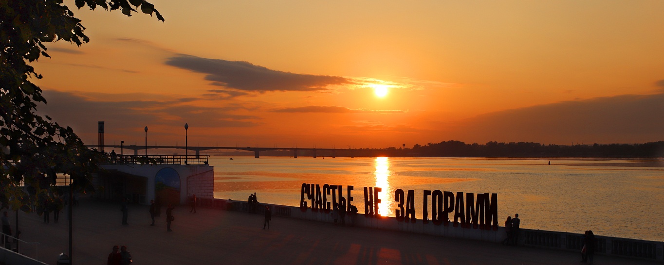 Визитная карточка мегаполиса, арт-объект «Счастье не за горами» расположен на набережной р. Кама, напротив речного вокзала. В выходные дни здесь собирается большое количество людей, желающих сделать фото на память.