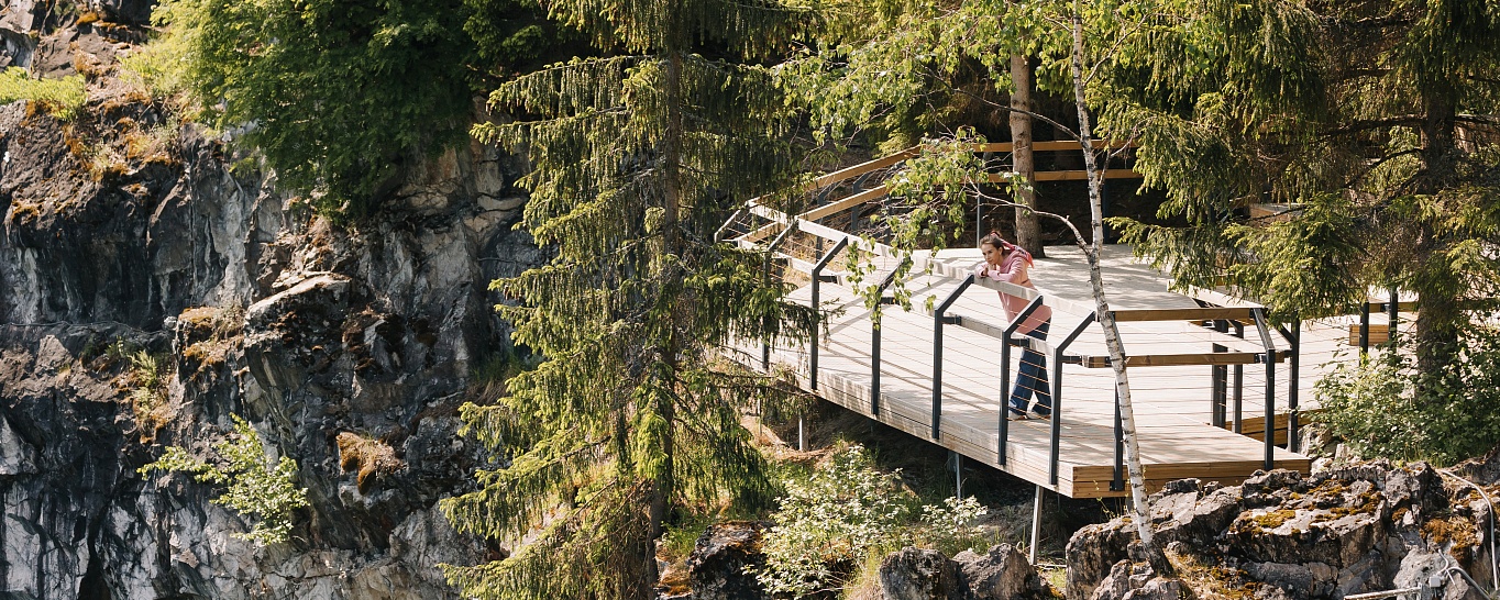 - Рускеала — уникальное природное место в Карелии. Основными достопримечательностями парка являются мраморные карьеры, где велась активная добыча мрамора в прошлом. Сейчас они превратились в живописные озера с чистой голубой водой, окруженные скалами и лесами. Посетители могут прогуляться по специально оборудованным тропам и насладиться уникальными видами окружающей природы. В парке можно заняться активным отдыхом: поучаствовать в экскурсии, сходить в поход, а также прокатиться на лодке.