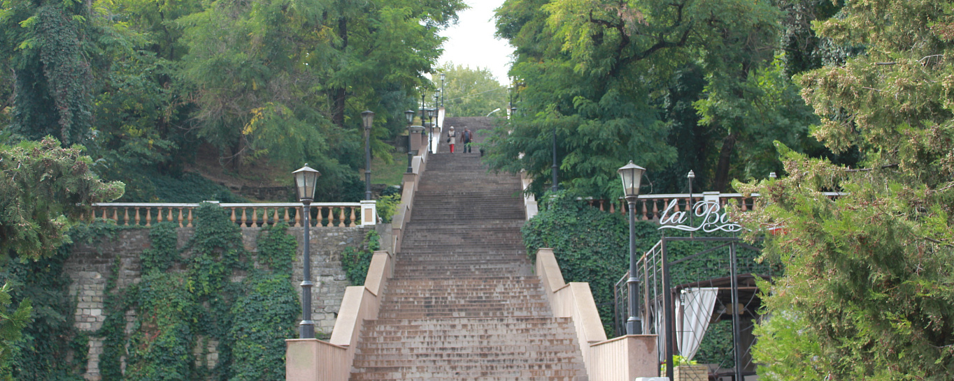 Каменная (Депальдовская) лестница На Каменной лестнице любят отдыхать местные жители и туристы. С высоты открывается потрясающий вид на город и море, которым наслаждались известные уроженцы Таганрога – Николай Федорович Щербин, Александр Леонидович Вишневский и Антон Павлович Чехов. Каменная лестница появилась благодаря местному богатому купцу и меценату греческого происхождения Герасиму Федоровичу Депальдо. Проект создал архитектор Франц Боффо, и к 14 сентября 1823 года работа была завершена. Интересная особенность лестницы – оптическая иллюзия. Если смотреть сверху вниз, она кажется одинаковой ширины. При взгляде снизу лестница выглядит так, будто сужается к верху. Этот эффект был достигнут за счет варьирования ширины ступеней.Каменная (Депальдовская) лестница