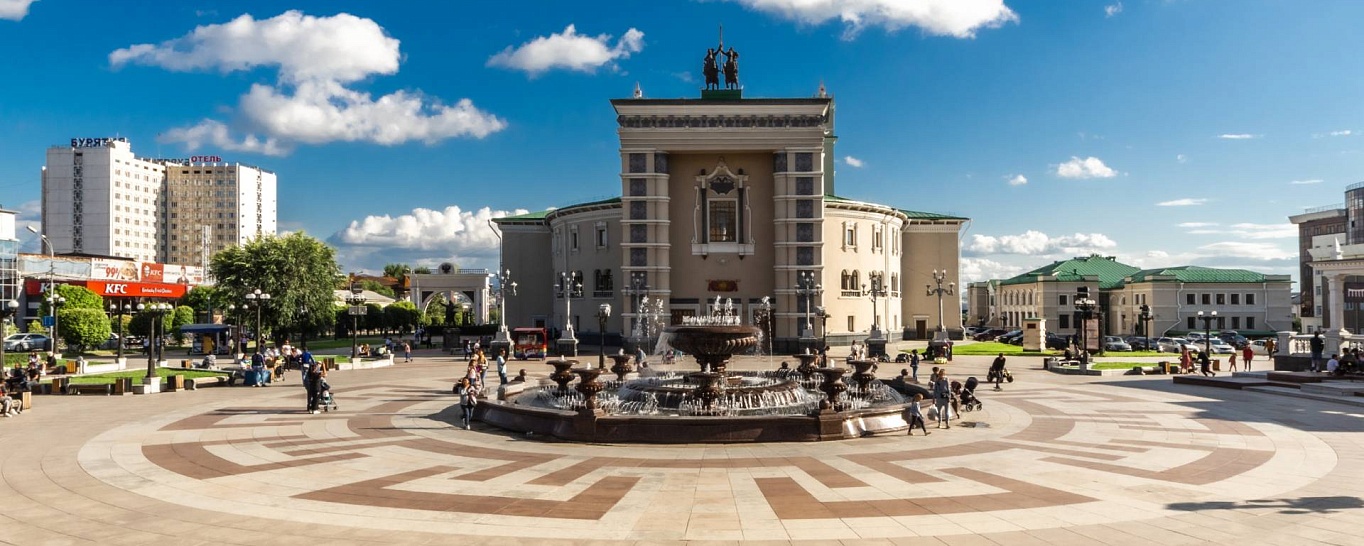 Театральная площадь – самый центр, через который пролегают все без исключения экскурсионные маршруты по столице Бурятии. Здесь расположено красивое и величественное здание Театра оперы и балета имени Цыдынжапова. С первого взгляда здание театра покоряет масштабом и оригинальностью архитектурного решения – в нем сочетаются классические черты и национальные элементы.