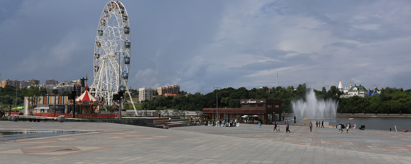 Красная площадь – сердце города, где проводятся главные мероприятия. Она находится на Советской набережной Чебоксарского залива. Центр притяжения – высокое колесо обозрения с закрытыми кабинками, работающее круглый год. Особенно здорово кататься на закате, когда город подсвечен ярким розово-оранжевым небом.