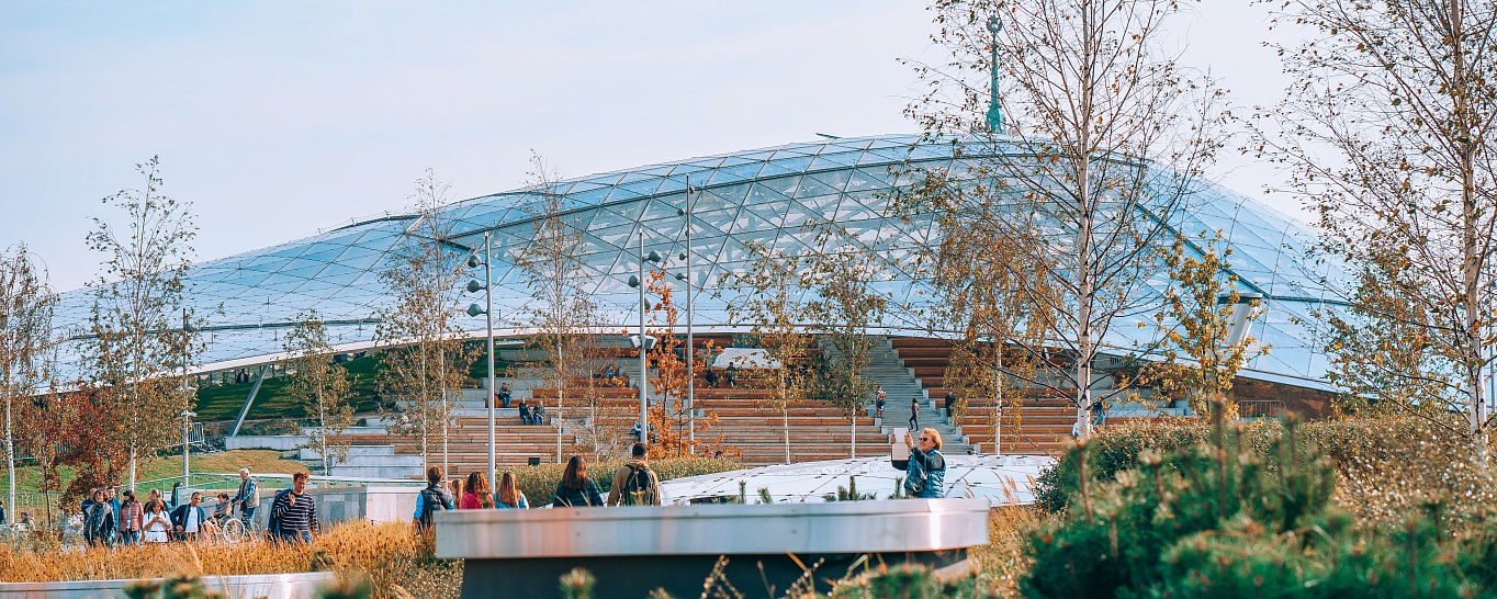 Уникальное место отдыха, открытое в 2017 г. на месте снесенной гостиницы «Россия». Общественное пространство, созданное коллективом московских и американских урбанистов, отмечено несколькими престижными наградами, и единственное из российских развлекательных мест попало в список лучших мест для отдыха журнала Time. На площади 13 га воссозданы четыре природные зоны России: тундра, степь, лес, болото. В оригинальных павильонах расположены экспозиции, информационный центр, кафе, сувенирные лавки и другие заведения. Самое большое здание парка – филармония, высокотехнологичный концертный зал из стекла и металла. Ещё одна интересная достопримечательность – нависающая над рекой панорамная смотровая площадка «Парящий мост».