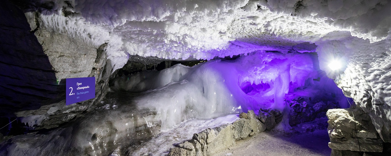 Неподалеку от городка Кургур, что в Пермском крае, расположено удивительное чудо природы – огромная ледяная пещера, одна из главных достопримечательностей Урала, точнее – Предуралья. Внутри пещеры всегда прохладно, даже знойным летом температура воздуха внутри не бывает выше +5 градусов. Зимой во внутренних территориях те же +5, только при входе воздух может быть таким же морозным, как на улице. Протяженность ходов пещеры 8 км, но экскурсии проводятся только по 1,5 км по самым интересным гротам и тоннелям. Большинство из них формировались на протяжении 10 000 лет. Есть внутри Кунгурской пещеры озера с чистейшей холодной водой, причудливые сталактиты и сталагмиты, фантастически красивая подсветка и восхитительная акустика. Побывать на экскурсии в гротах ледяного подземного царства чрезвычайно интересно.
