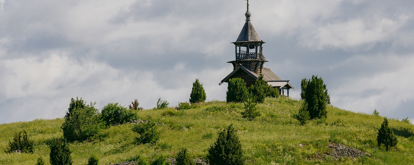 На фоне синего карельского неба гармонично смотрятся три главных сооружения острова: