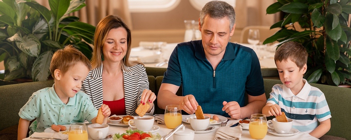 Детское питание, так же как и для взрослых, предлагается по выборному меню как при обслуживании официантами, так и при организации питания по системе шведского стола. По весу детская порция немного меньше, чем для взрослого. На некоторых теплоходах, например, в классе «Люкс» и «Премиум», можно также заказать отдельно спецпитание, безглютеновое, вегетарианское и любое другое меню. Не волнуйтесь, вы всегда найдете, чем накормить своего маленького привереду!