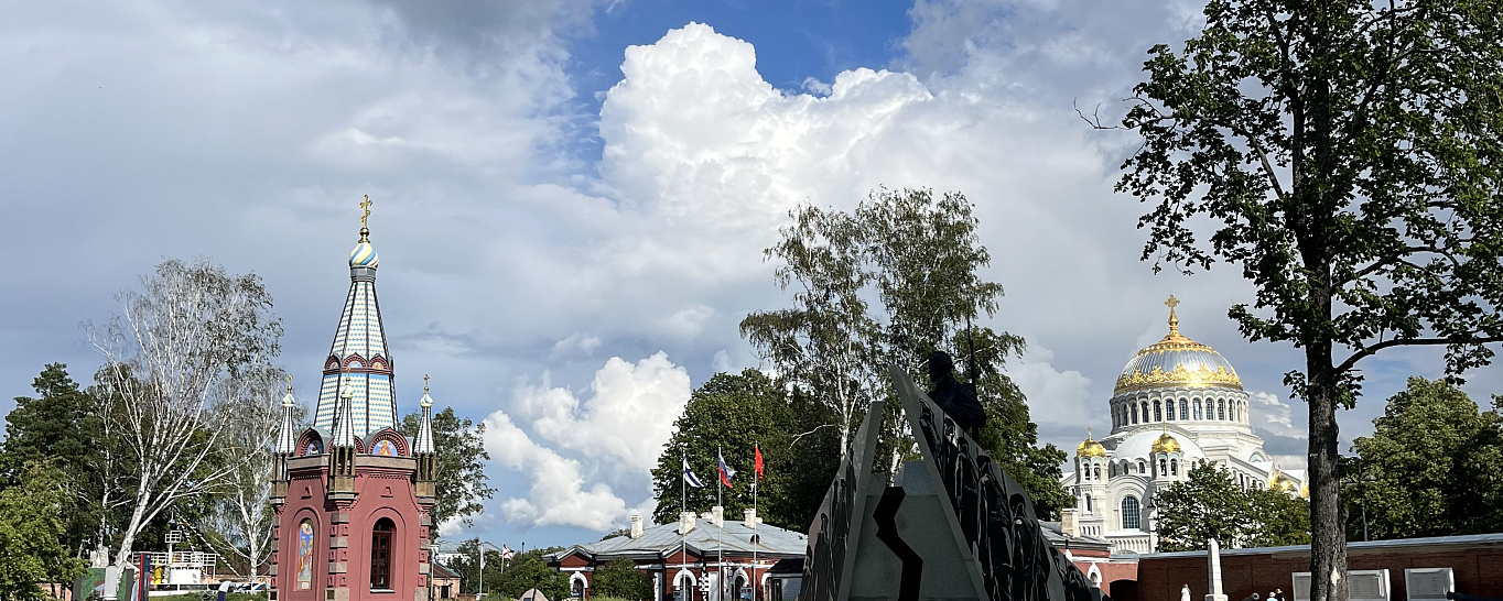 Визитная карточка Кронштадта – Никольский Морской собор. Здесь хранятся мощи святых Николая Чудотворца, Сергия Радонежского, Феодора Ушакова. Самый крупный морской храм России был заложен в 1903 г. как памятник погибшим морякам, в ознаменование двухсотлетия Российского флота. Величественное здание, ставшее главным храмом ВМФ, выстроено в неовизантийском стиле, повторяя планировку собора святой Софии в Константинополе. Оформление собора посвящено морской тематике – так, пол украшает мозаика с изображением кораблей и рыб.