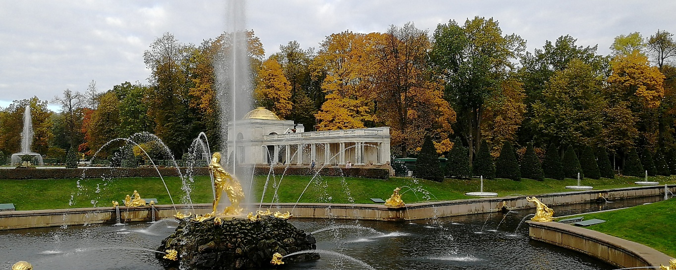 Самый знаменитый пригород Санкт-Петербурга не случайно называют «русским Версалем». Дворцово-парковый ансамбль на южном берегу Финского залива поражает красотой архитектуры и зеленых насаждений, но главным чудом со времен Петра I остаются «водные феерии» – уникальная система фонтанов и водных каскадов. Гениальное инженерное решение позволило объединить естественные водоемы в единое русло, превратив их в систему водоснабжения фонтанов. Огромный фонтанный комплекс функционирует уже более трех веков, используя только естественный сток и напор воды в постепенно сужающихся трубах, без использования электроэнергии.