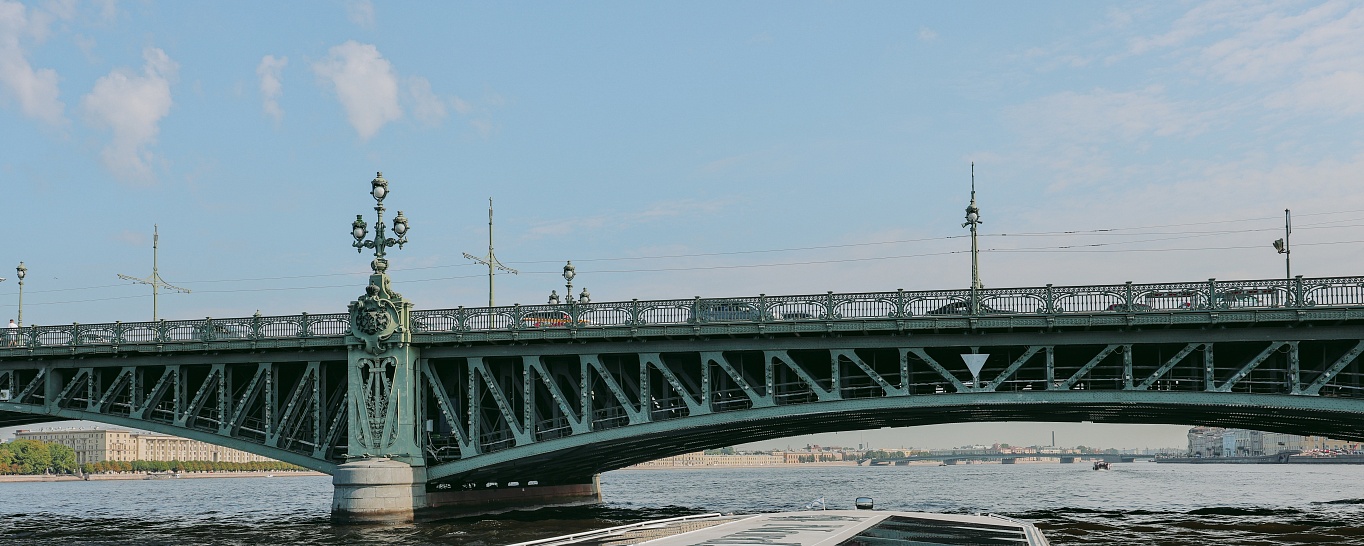 Троицкий — старый, но в то же время один из самых красивых мостов Петербурга, связывающий Петроградский район с центральной частью города. Его история начинается еще в конце XIX в., а название он получил в честь Троицкого собора, в то время располагавшегося неподалеку. Примечателен изящными фонарями, а также великолепными видами на Петропавловскую крепость и Зимний дворец.