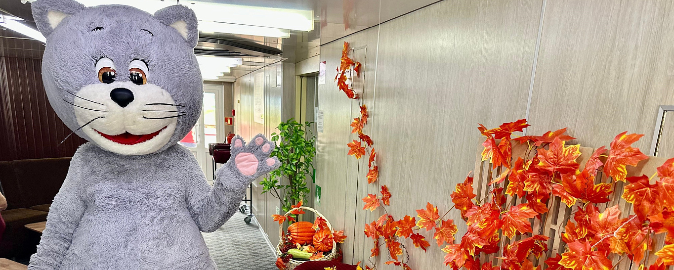 В тематическую осеннюю фотозону на теплоходе «Сергей Кучкин» пришел посниматься наш усатый друг Водокот и, конечно, сразу же стал звездой социальных сетей.