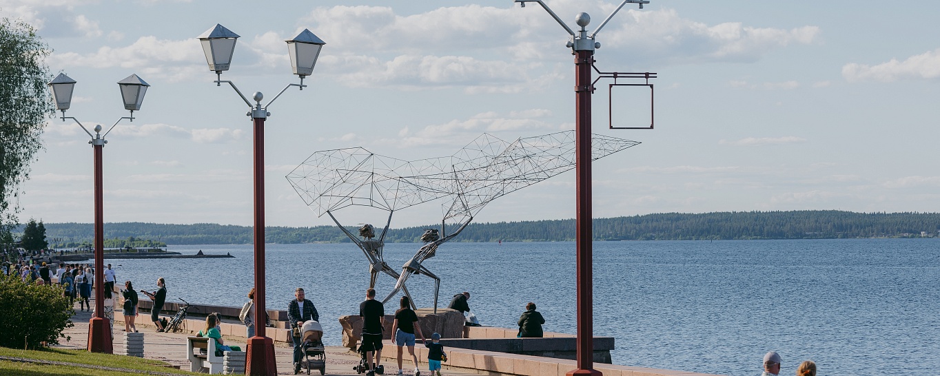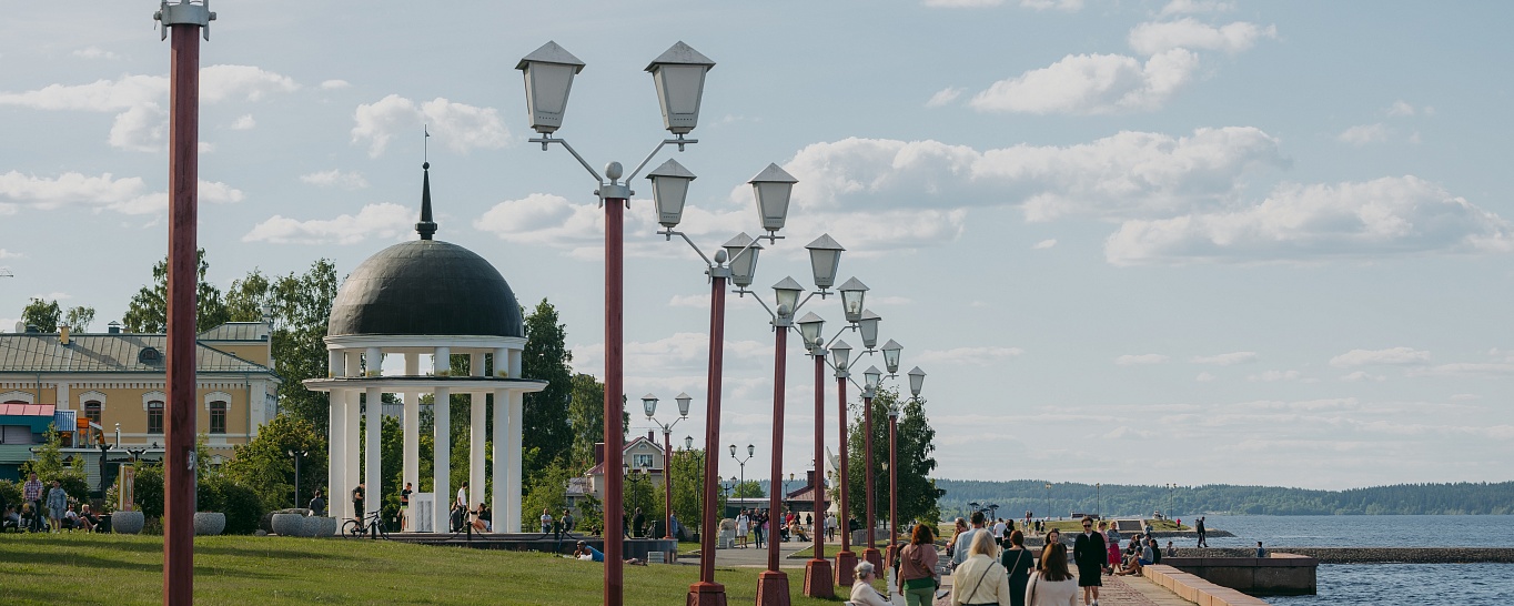 Петрозаводск – столица республики Карелия. Находится на северо-западном побережье озера. Основан Петром I в 1703 году, Петрозаводск – ровесник Санкт-Петербурга. В настоящее время в городе проживает 236 000 человек. Столицу Карелии называют «Портом пяти морей», «Воротами Онеги». Во время летней навигации большинство туристов прибывает в город на круизных теплоходах. Петрозаводск очень уютный, зеленый город с красивой гранитной набережной. Большинство достопримечательностей расположено компактно, что очень удобно при знакомстве с Карельской столицей. Великолепный памятник Петру I, квартал «Старый город», Ботанический сад местного университета, интересные музеи с удовольствием посещаются гостями города.