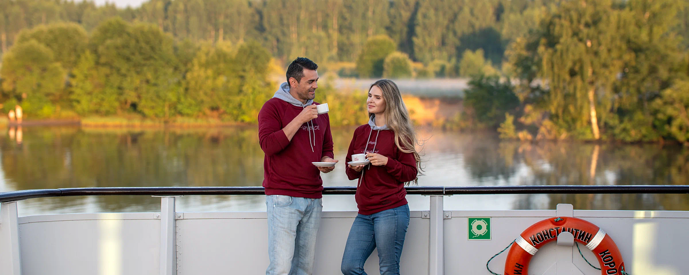 За время круиза теплоход сделает несколько остановок в разных городах, но вам не придется разбирать и собирать чемодан: достаточно один раз донести вещи до каюты и каждый день открывать новые города. Ничто не будет отвлекать вас от главного — удовольствия путешествовать с любимым человеком.