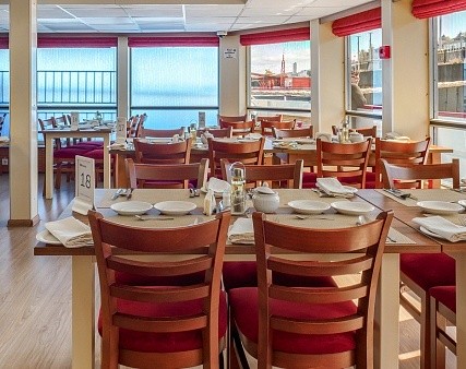 - Завтрак — шведский стол или заказная система с элементами шведского стола, фиксированная рассадка. Включённые напитки (без ограничения): вода, сок, чай, кофе. В рейсах до 4-х дней при ранней высадке в день прибытия завтрак континентальный;
