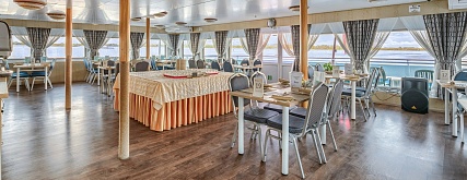 Первая услуга по питанию - завтрак. Каждый день на борту теплохода вас будет ждать развлекательная программа.