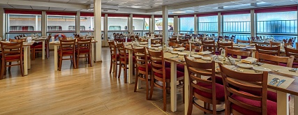 Расширенный тариф. Фиксированная рассадка в ресторане «Онега» на средней палубе, количество мест ограничено.