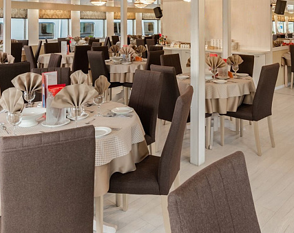 - Полный пансион (завтрак + обед + ужин): завтрак — шведский стол или заказная система с элементами шведского стола, фиксированная рассадка. Включённые напитки (без ограничения): вода*, сок, чай, кофе; обед — заказная система питания (выбор блюд со 2-го дня круиза), фиксированная рассадка. Включённые напитки (без ограничения): вода*, чай, кофе, морс (порционно); ужин — заказная система питания (выбор блюд со 2-го дня круиза), фиксированная рассадка. Включённые напитки (без ограничения): вода*, чай, кофе, кисломолочный продукт (1 стакан, 200 мл); порционно на выбор - вино красное / белое / игристое (1 бокал, 125 мл) / водка (1 рюмка, 50 мл) / пиво (1 бокал, 300 мл) / домашний морс (1 бокал, 200 мл).
