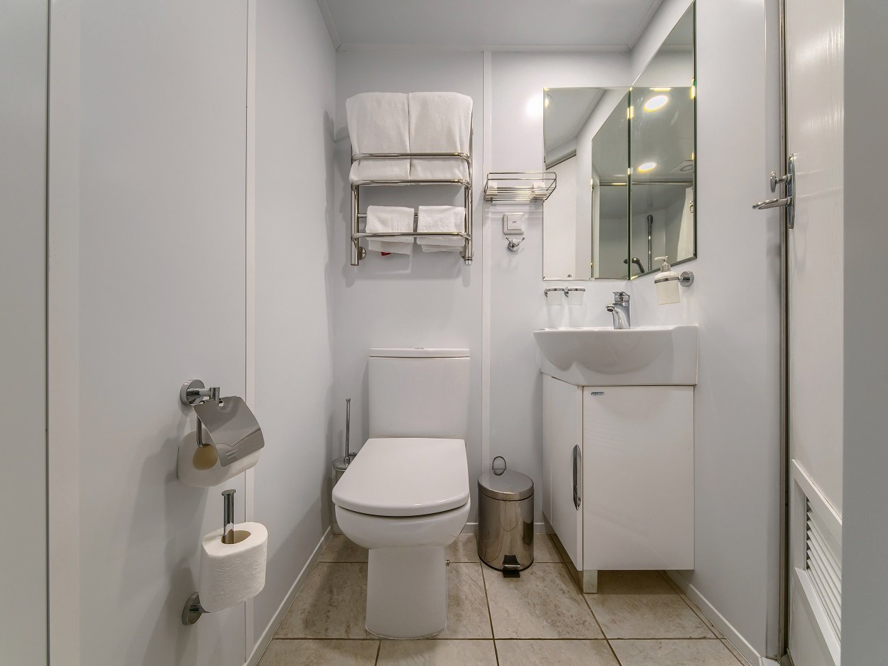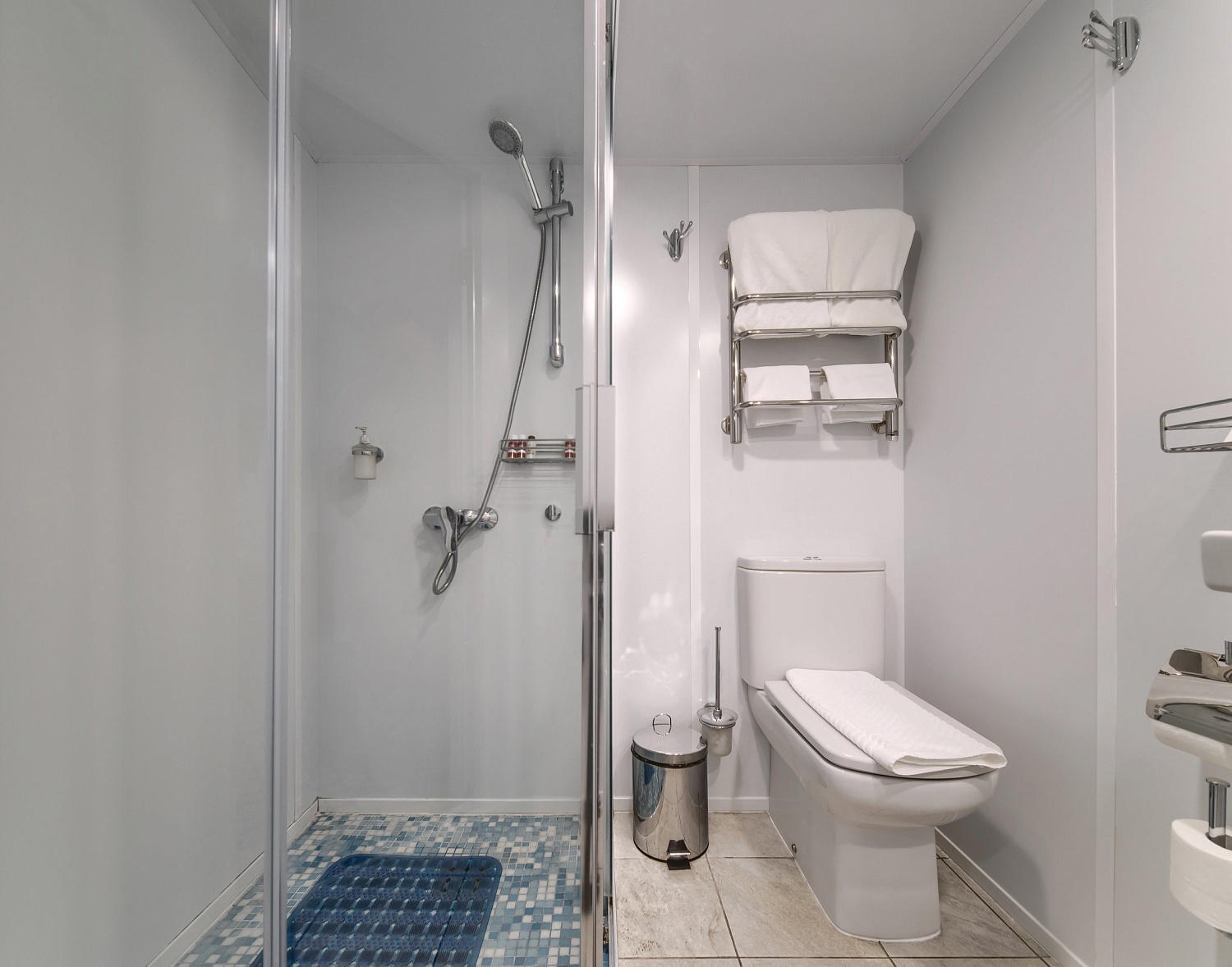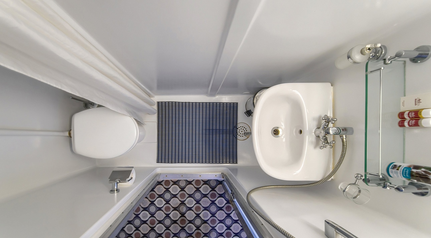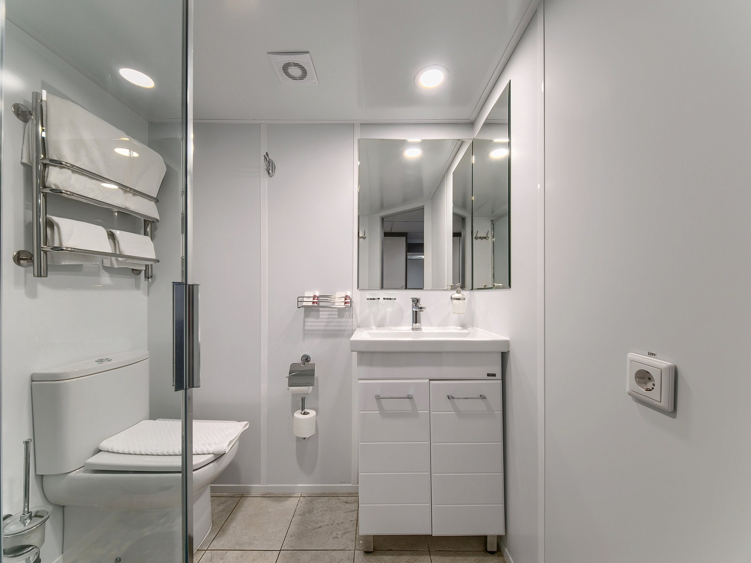 В каюте: одно спальное место, шкаф для одежды, радио, телевизор, холодильник, сейф, фен, душ, санузел, кондиционер, обзорное окно, электророзетка на 220V.
