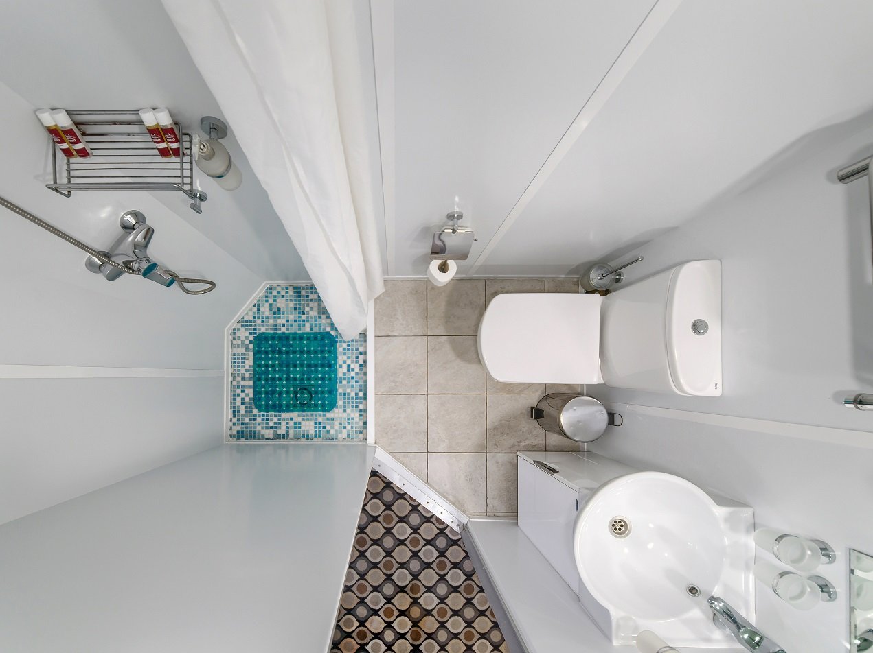 Расширена площадь санблока, отдельный душ, санузел, кондиционер.