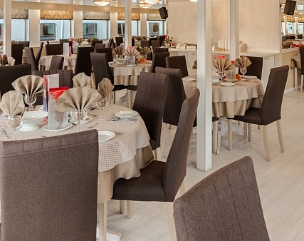 - Питание в соответствии с выбранным тарифом: завтрак, полупансион, полный пансион. В день начала и день окончания круиза питание предоставляется в зависимости от времени посадки и высадки; в случае, если время проведения экскурсии совпадает со временем приема пищи, гостю предоставляется питание в ресторане/кафе города или выдается «ланч-бокс»