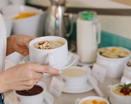 - Завтрак: завтрак — шведский стол или заказная система с элементами шведского стола, фиксированная рассадка. Включённые напитки (без ограничения): вода*, сок, чай, кофе.