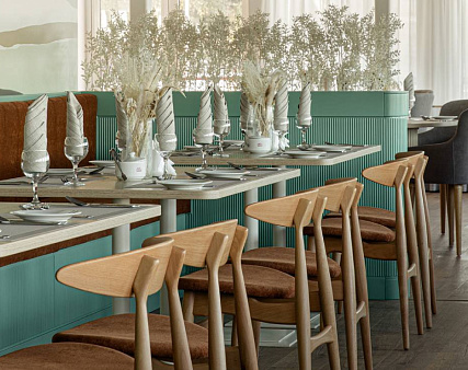- Завтрак – шведский стол или заказная система с элементами шведского стола, фиксированная рассадка. Включённые напитки (без ограничения): вода, сок, чай, кофе.
