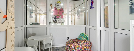 Комфортабельная гостиная с современным интерьером, мягкая мебель (два кресла, раскладывающийся на двух человек диван), журнальный столик, шкаф-стенка, кондиционер, радио, телевизор, холодильник, фен, сейф, два обзорных окна, электророзетка на 220V.