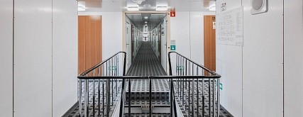 Площадь кают: 433-436 (шлюпочная палуба) — 7,5 м2, 429-432 (шлюпочная палуба) — 6,4 м2, 365-372 (средняя палуба) — 7,2 м2, 355, 356, 317, 318 (средняя палуба) — 6,4 м2.