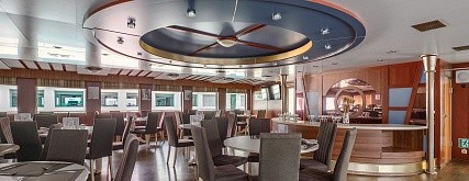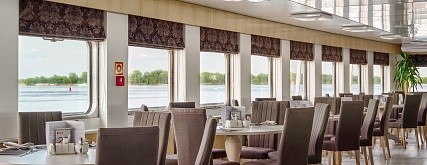 - Полный пансион (завтрак + обед + ужин): завтрак — шведский стол или заказная система с элементами шведского стола, фиксированная рассадка. Включённые напитки (без ограничения): вода*, сок, чай, кофе; обед — заказная система питания (выбор блюд со 2-го дня круиза), фиксированная рассадка. Включённые напитки (без ограничения): вода*, чай, кофе, морс (порционно); ужин — заказная система питания (выбор блюд со 2-го дня круиза), фиксированная рассадка. Включённые напитки (без ограничения): вода*, чай, кофе, кисломолочный продукт (1 стакан, 200 мл); порционно на выбор - вино красное / белое / игристое (1 бокал, 125 мл) / водка (1 рюмка, 50 мл) / пиво (1 бокал, 300 мл) / домашний морс (1 бокал, 200 мл).