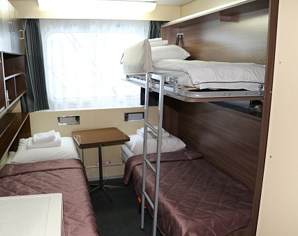 Возможна продажа каюты в трех- и двухместном размещении по стоимости трехместной двухъярусной и двухместной одноярусной каюты.