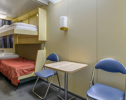 Возможна продажа каюты в трех- и двухместном размещении по стоимости трехместной двухъярусной и двухместной одноярусной каюты.
