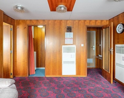 В каюте: два спальных места, шкаф для одежды, холодильник, телевизор, фен, радио, душ, санузел, кондиционер, обзорное окно, электророзетка на 220V.