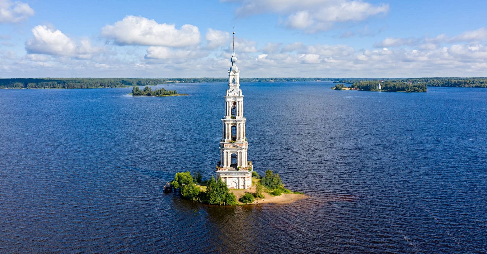 Калязин – старинный город, датируемый XII веком. Во время заполнения Угличского водохранилища большая часть города ушла под воду. Были разрушены Троицкий Калязин монастырь и Никольский храм. Напоминанием об этих событиях осталась Никольская колокольня, высящаяся посреди Угличского водохранилища и ставшая своеобразным символом Калязина. В городе находится Краеведческий музей, Введенская церковь и музей «Волгари».