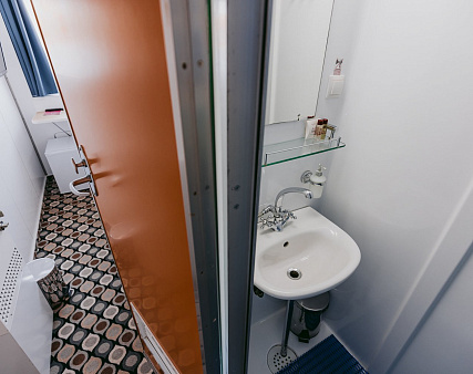 Расширена площадь санблока, отдельный душ, санузел, кондиционер. Площадь каюты — 26 кв.м.