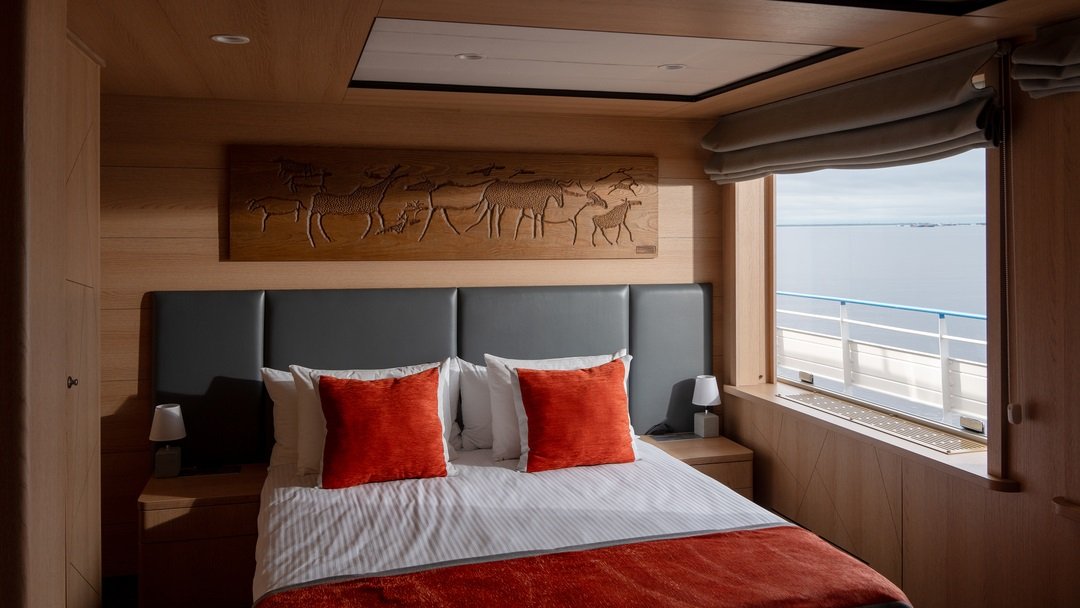 Площадь каюты 16,5 м2 (спальня — 6,2 м2, гостиная — 10,3 м2).