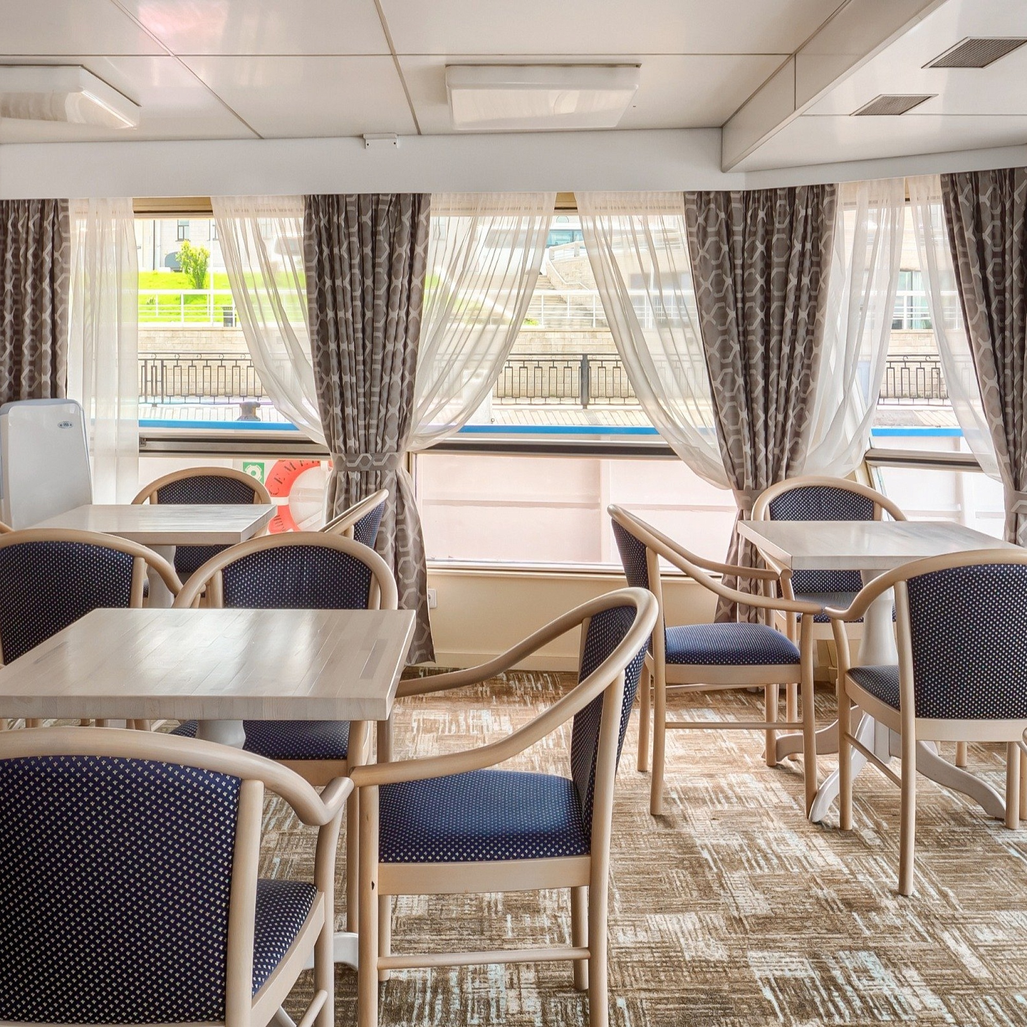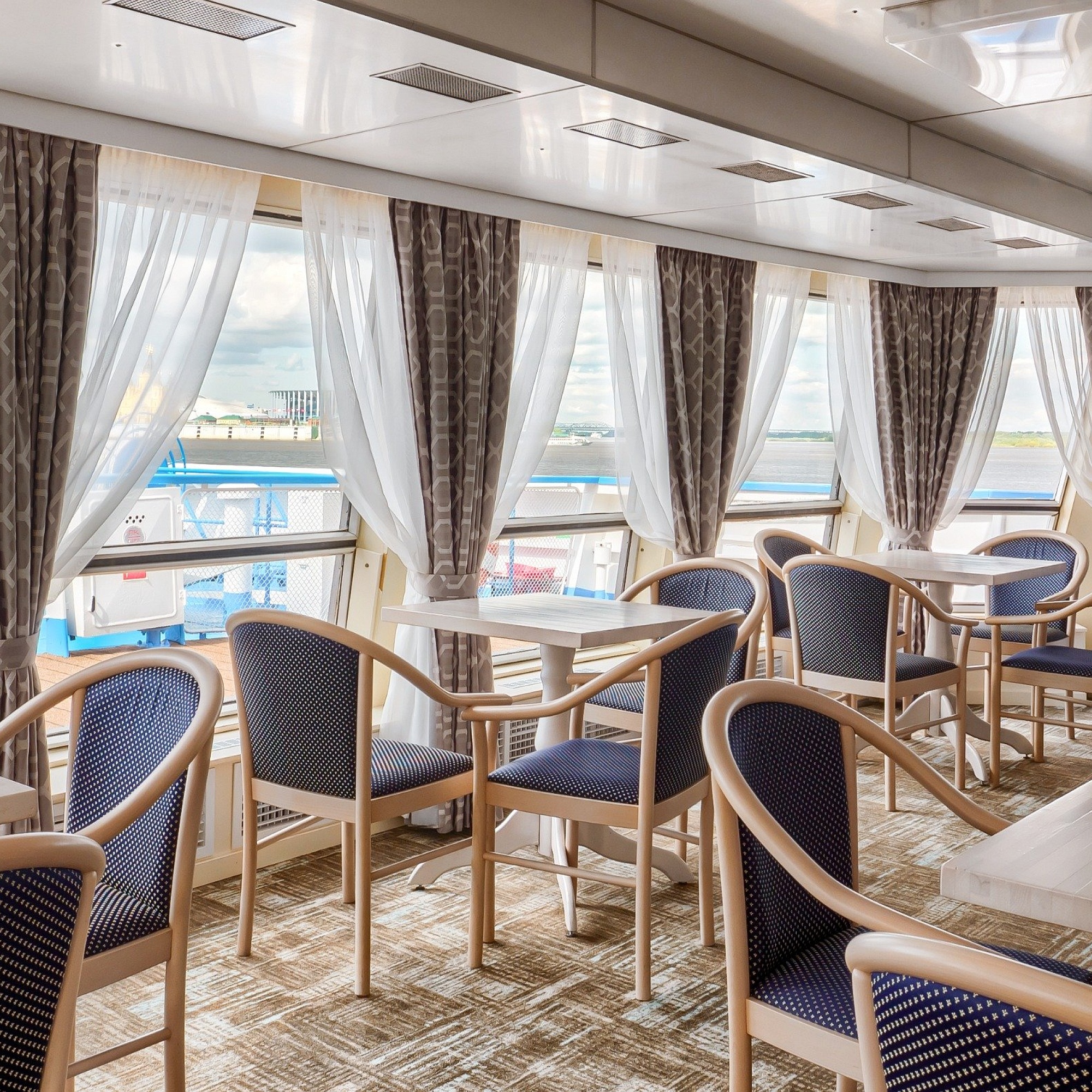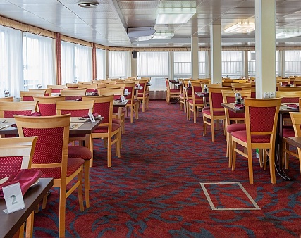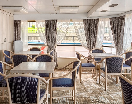 - Завтрак — шведский стол или заказная система с элементами шведского стола, фиксированная рассадка. Включённые напитки (без ограничения): вода, сок, чай, кофе. В рейсах до 4-х дней при ранней высадке в день прибытия завтрак континентальный;