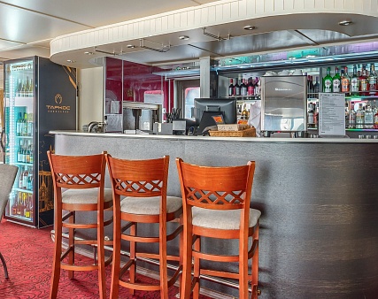 — игристое вино (1 бутылка на каюту) в день посадки, без пополнения, только в рейсах от 5 дней;