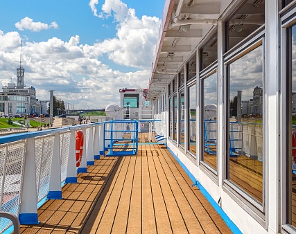 Теплоход прибывает по московскому времени.