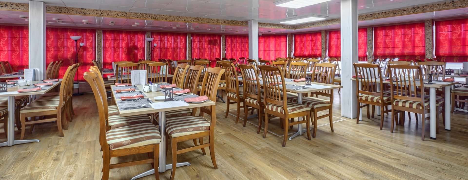 - Завтрак — шведский стол или заказная система с элементами шведского стола, фиксированная рассадка. Включённые напитки (без ограничения): вода, сок, чай, кофе. В рейсах до 4-х дней при ранней высадке в день прибытия завтрак континентальный;