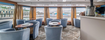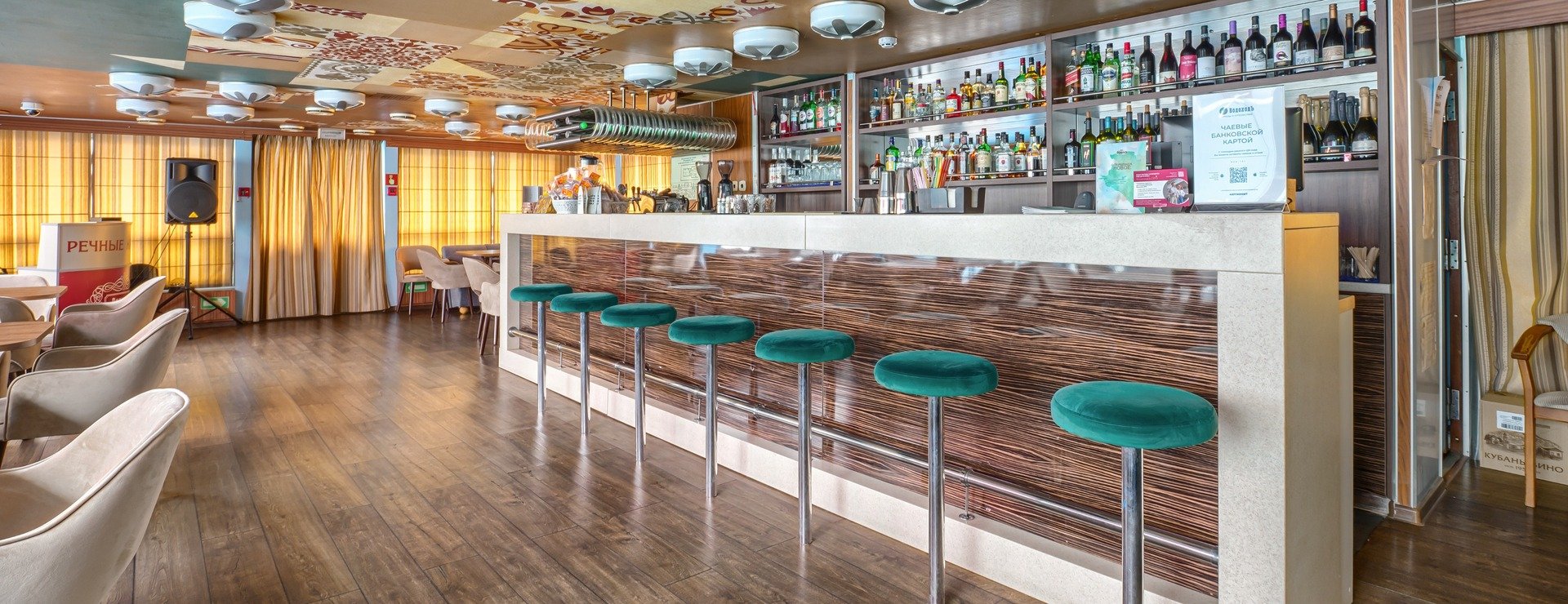 - Ужин — заказная система питания (выбор блюд со 2-го дня круиза). Включённые напитки (без ограничения): вода, чай, кофе, кисломолочный напиток (1 стакан 200 мл на ужин по запросу гостя). На выбор: вино красное / белое / игристое (1 бокал, 125 мл) / водка (1 рюмка, 50 мл) / пиво (1 бокал, 300 мл), домашний морс (1 бокал, 200 мл);